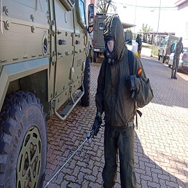 El personal de la Agrupación de Apoyo Logístico Nº11 desinfecta la Base Logística San Pedro en Colmenar Viejo. Para poder apoyar en el exterior hay que extremar las medidas en tu propia casa.