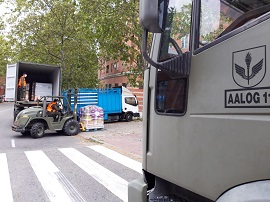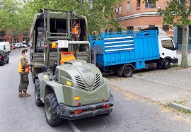 La Agrupación de Apoyo Logístico Nº11 transporta, procedente de Feria de Madrid - IFEMA, alimentos a la Parroquia de San José en Madrid. En un sólo día, ha distribuido 100.000 kg de alimentos y agua, además de 102 colchones y ropa de cama.