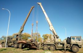La AALOG 11 apoya con dos grúas en el traslado de un cañón de artillería