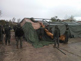 El 21 de abril de 2022, la Plana Mayor de Mando (PLMM) de la Agrupación de Apoyo Logístico nº 11 (AALOG 11), perteneciente a la Brigada Logística (BRILOG), ha realizado otra jornada de instrucción prolongada para llevar a cabo la práctica de instalación del Puesto de Mando del Complejo Logístico de Apoyo General (PC COLAG).