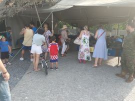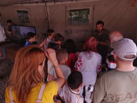 De 11:00 a 14:00, y de 18:00 a 21:00, durante esos tres días, 4 militares de la AALOG 11 han atendido perfectamente al muy numeroso público que acudió, a pesar del calor, y la lluvia, a visitar la exposición de material.