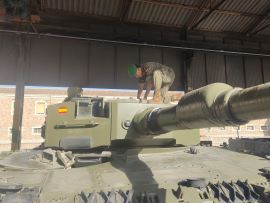 En este apoyo se han llevado a cabo diversas tareas de mantenimiento preventivo y correctivo a vehículos ruedas (Anibal, camiones Iveco y Vehículos de Alta Movilidad Táctica), vehículos acorazados y mecanizados (Carro de Combate Leopard 2 A4, Vehículo de Combate de Infantería Pizarro, Vehículo TOA M-113), armamento ligero y pesado, y material de transmisiones.
