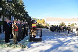 Habiendo renovado juramento todos los asistentes de la ciento cuarenta y nueve promoción de Oficiales del Arma de Ingenieros y despedido con un beso los familiares, la Bandera recuperó su puesto en formación, siendo el abanderado de nuevo el Caballero Alférez Cadete número uno de la 199 promoción de Oficiales del Arma de Ingenieros.