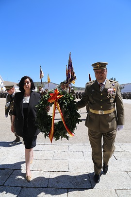 Posteriormente, tras las emotivas palabras del Teniente Coronel D. Antonio Aparicio López, componente más antiguo de la III Promoción de la Academia General Básica de Suboficiales y la alocución del Ilmo. Sr. Coronel Director de la ACING, los guiones y banderines realizaron el homenaje a los que dieron su vida por España, retirándose a continuación la fuerza para realizar el desfile ante las autoridades militares y el público presentes, con el que finalizó la Parada Militar.