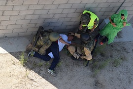 Por otra parte, para no olvidar que están inmersos dentro del Apoyo Sanitario, se he empezado a impartir el “ABC” de los primeros conocimientos de asistencia sanitaria que van desde arrastres y acarreos de circunstancias, transporte en camilla e introducción al TCCC, pasando por cuidados bajo el fuego (CUF), fluidoterapia periférica o control de vía aérea y hemorragias.