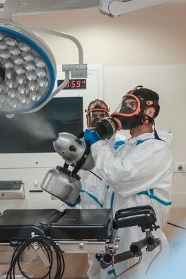 La Agrupación de Sanidad 1 continúa participando en la Operación BALMIS con apoyos de desinfección: El equipo actuante, compuesto por dos Oficiales Veterinarios, un Suboficial Auxiliar de Veterinaria y cuatro de tropa con el curso de aplicador, realizaron actuaciones en los diferentes centros, residencias y colegios de la Comunidad de Madrid.