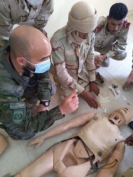 Del 20 de marzo al 17 de abril, se ha desarrollado la actividad de seguridad cooperativa con el Ejército de Mauritania, con la finalidad de instruir y formar a personal sanitario tanto de Tropa como a Cuadros de Mando facultativos.