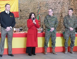 Tras los saludos, la titular de Defensa dirigió unas palabras al personal de la unidad: “Quiero agradecerles a todos su esfuerzo, ha sido un año de muchísimo trabajo; Y que sigan prestando apoyo a todos los contingentes y a todo el Ejército de Tierra como lo hacen, con una eficacia al minuto y siempre con la mejor cara”.