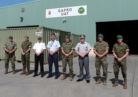 La visita finalizó con un sencillo acto social en el que, tras las palabras de agradecimiento del brigadier Cáceres Cuadra por los conocimientos recibidos, hubo un pequeño intercambio de recuerdos conmemorativos de la visita y firma en el Libro de Honor del GAPRO II/1.