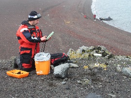 Aprovechando sus conocimientos adquiridos en el curso de Producción de Información Geoespacial y los años de servicio en CEGET, también va a colaborar en la realización de los primeros vuelos cenitales con el RPAS de la campaña (MATRICE 210), usando las cámaras óptica (Zemuse XT) y térmica (Zemuse Z30) que lleva a bordo, para tomar información de zonas de interés de la Isla Decepción solicitadas por varios proyectos científicos.