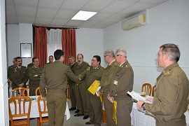 Posteriormente en el comedor se ha hecho entrega de una bandera de mochila de esta ESPOL a todos los alumnos que han finalizado el citado curso, en el acto el Coronel Director tuvo unas palabras de agradecimiento a los alumnos que nos dejan, el Coronel hizo una reflexión sobre la etimología de la palabra “Deseo” con la que aprovecho para desear unas Felices fiestas a todo el personal, Profesores, mandos , alumnos y personal de tropa asistentes al acto. En su alocución deseó que los alumnos que finalizan su formación no olviden esta Escuela, y ofreció el apoyo a todos los militares que lo necesiten y que a partir de hoy desempeñaran su trabajo en distintas unidades del Ejército.