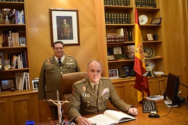 El Viernes 24 recibimos la visita del GEMADOC el Excmo.Teniente General Don Jerónimo de Gregorio y Monmeneu le acompañaba el Excmo. General de División D. Fernando Barrón Clavet de la DIEN y el Excmo. General de Brigada D. Antonio Jesús Cabrerizo Calatrava, Subdirector de Enseñanza. Fueron recibidos por el Coronel Director D. Jerónimo Luis Garrido Simón al que le acompañaba el Sbmy. D. Roberto Sánchez Ruiz. En la línea de saludo se encontraban: