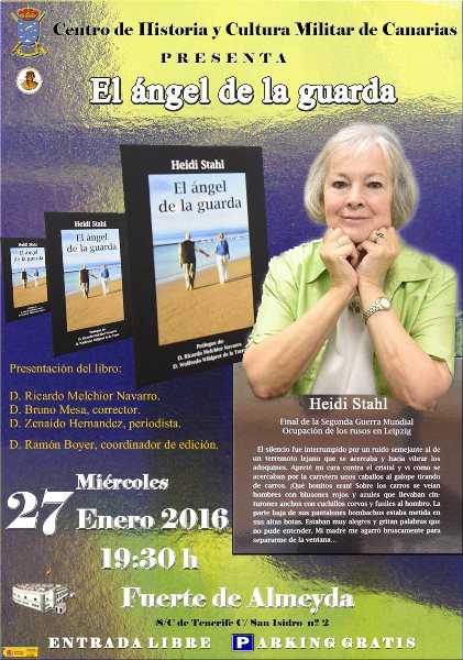 La escritora Dª Heidi Stahl preseta su libro “El Ángel de la Guarda” en el salón de actos del Centro de Historia y Cultura Militar de Canarias,El libro, ha sido editado por D Ramón Boyer y publicado con prólogos de D. Wolfredo Wildpret de la Torre y Ricardo Melchior Navarro.
