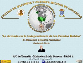Dentro de las actividades de la Cátedra “General Gutierrez”, codirigida por la ULL y el Centro de Historia y Cultura Militar de Canarias se presenta la conferencia: "La Armada en la Independencia de Estados Unidos", que será impartica por el Sr. D. Marcelino González Fernandez, Capitán de Navío de la Armada española.