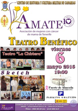 El Centro de Historia y Cultura Militar de Canarias (Tenerife) informa que los viernes, durante el mes de mayo, ofrecera, gracias a la colaboración de la “Asociación de mujeres con cáncer de mama de Tenerife” (AMATE), las sesiones de Teatro: