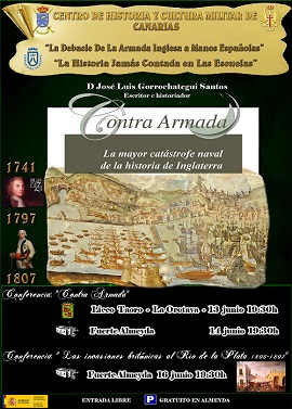 Dentro de las actividades de la Cátedra “General Gutierrez”, codirigida por la ULL y el Centro de Historia y Militar de Canarias (Tenerife), se impartirá el Ciclo de Conferencias sobre: " La Debacle de la Armada Inglesa a Manos Españolas", por . D. José Luis Gorrochategui Santos, escritor e historiador.