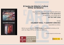 El Centro de Historia y Cultura Militar de Baleares ha preparado una exposición de pintura con ocasión de la Nit de l'Art 2016. Que estará dedicada a los pintores Gelabert Niell y Leandro Sánchez.