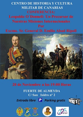El próximo día 20 de Noviembre a las 19:00 horas se impartirá una conferencia, en el establecimiento de Almeyda, por el Excmo. Sr. General D. Emilio Abad Ripoll sobre la figura de Leopoldo O´Donnell