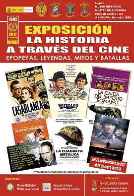 Organizada por el Museo Histórico Militar de A Coruña y la Asociación de Amigos del Museo Militar, con la colaboración de la Fuerza Logística Operativa y la Asociación Histórico Cultural “The Royal Green Jackets” se inaugurará la exposición: “La historia a través del cine. Epopeyas, leyendas, mitos y batallas”.