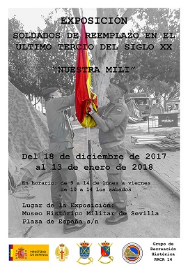 El Museo Histórico Militar de Sevilla y el grupo de recreación histórica RACA 14 presentan la exposición temporal " Soldados de Reemplazo en el Último Tercio del Siglo xx - Nuestra MILI".