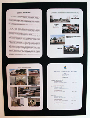 Con la finalidad de dar a conocer al “gran público”, y no solo a los investigadores, los fondos archivísticos que constituyen el patrimonio del Archivo Intermedio Militar de Canarias, se ha inaugurado una sala con la exposición permanente del citado Archivo. La exposición está constituida básicamente por una pequeña muestra de los millones de documentos y fondos de que dispone: expedientes personales, documentación histórica del fondo histórico de la capitanía general de canarias, mapas, documentos gráficos, etc.