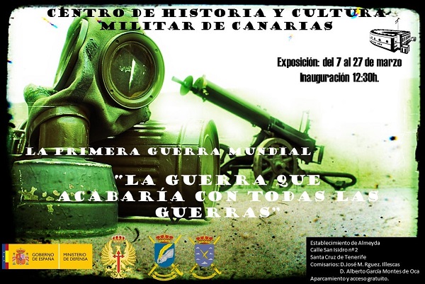 El Centro de Historia y Cultura Militar de Canarias presenta la exposición dedicada a la Primera Guerra Mundial "La guerra que acabaría con todas las guerras". Siendo los comisarios de la misma D. José María Rodriguez Illescas y D. Alberto García Montes de Oca.