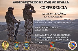 Con la colaboración de la Asociación Cultural Amigos del Museo Histórico Militar de Sevilla, El Centro de Historia y Cultura Militar de Sevilla y el Museo Histórico Militar organizan la conferencia " La Misión Española en Afganistán", que será impartida por el Coronel D. Miguel Ballenilla y Garcia de Gamarra.