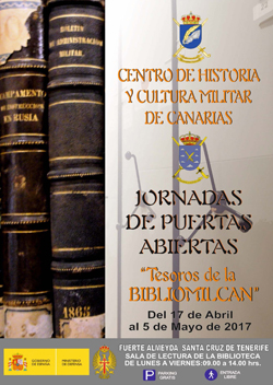 Las Jornadas de Puertas Abiertas titulada: “Tesoros de la BIBLIOCAN” tienen como finalidad la difusión del Fondo Antiguo de la Biblioteca Histórico Militar de Canarias, perteneciente al Centro de Historia y Cultura Militar situado en el Cuartel de Almeyda de Santa Cruz de Tenerife, vinculándolas con la efeméride del Día Internacional del Libro, fijado por la UNESCO en el día 23 de abril. EL origen del día del libro se remonta al año 1926; en un 23 de abril fallecieron o nacieron ilustres escritores como Cervantes, Shakespeare, el Inca Garcilaso de la Vega...