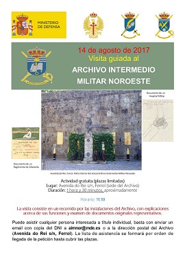 El Archivo Intermedio Militar Noroeste ha programado una visita guiada gratuita abierta al público. La actividad comenzará con el recibimiento a los asistentes por parte del Director del Archivo, el teniente coronel D. Manuel García Rochela. A continuación se desarrollará la visita guiada a cargo de Dª María del Carmen Rial Quintela, directora técnica del Archivo, quien realizará una exposición sobre el Sistema Archivístico del Ministerio de Defensa y las funciones del Archivo mientras se realiza un recorrido por las instalaciones del Baluarte del Infante, durante el cual podrán examinarse por los visitantes algunos de los documentos originales representativos de los fondos documentales que pueden consultarse en su Sala de Investigadores. La visita durará aproximadamente una hora y media.