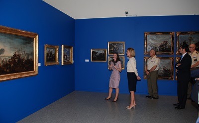 Tradicionalmente el género de batallas no es tan frecuente en la historia de la pintura, en comparación con otros, como el de naturalezas muertas o bodegones, retratos o paisajes. Sin embargo ilustra muy bien la narración de acontecimientos bélicos, reales o imaginarios, y sobre todo permite visualizar una gran cantidad de estilos y autores o escuelas, que a lo largo de la historia han sabido escenificar los grandes momentos heroicos, individuales o grupales, combates que han permanecido en la retina de sus autores, con toda la carga semántica y simbólica que implican esas escenas de esta espléndida colección. La Ministra de Defensa inauguró la exposición acompañada por la comisaria Guiomar Monforte.