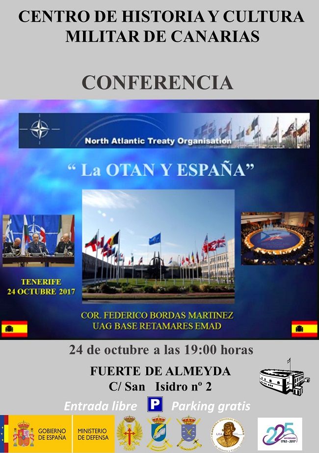 El Centro de Historia y Cultura Militar de Canarias presenta, dentro del Ciclo de Seguridad y Defensa de la Cátedra General Gutierrez, la conferencia “ La OTAN y España ” que será impartida por el Coronel D. Federico Bordas Martinez.