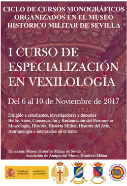 Se convoca el I Curso de Especialización: Vexilología, organizado y coordinado por el Museo Militar de Sevilla y la Asociación Cultural Amigos del Museo Histórico Militar de Sevilla, y patrocinado por la Fuerza Terrestre. Se impartirá en la ciudad de Sevilla por personal del Instituto de Historia y Cultura Militar de Madrid y de la asociación antes mencionada.