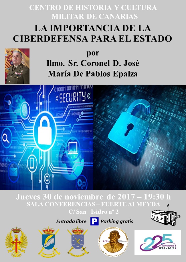El Centro de Historia y Cultura Militar de Canarias presenta la exposición “La Importancia de la Ciberdefensa para el Estado” que será impartida por el Coronel de Infantería D. José María de Pablos Epalza, Jefe de la Sección de Ciberdefensa de JCISAT.