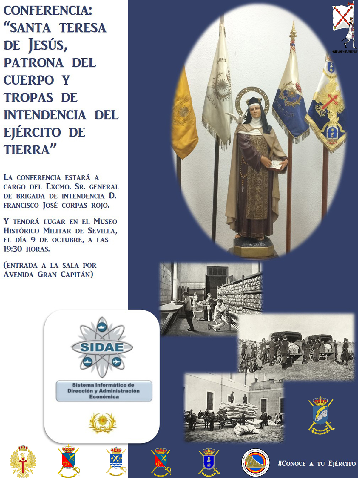En el desarrollo de la conferencia se ponen de manifiesto las causas y circunstancias que llevaron a la designación de La Santa como Patrona de los Intendentes y el porqué éstos renuevan cada 15 de octubre su compromiso de servicio a España y al Ejército bajo su advocación.