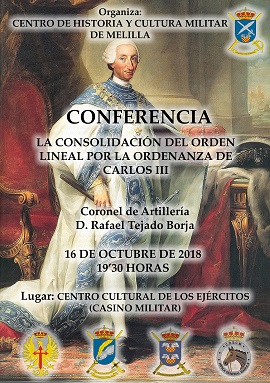 El Centro de Historia y Cultura Militar de Melilla presenta la conferencia “La Consolidación del Orden Lineal por la Ordenanza de Carlos III”, que será impartida por el Coronel de Artilleria D. Rafael Tejado Borja.
