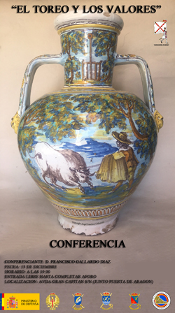 La Tauromaquia pone en juego valores eternos que se han practicado desde los juegos pan-helénicos, las competiciones olímpicas o las justas medievales. Milicia y tauromaquia son coincidentes en valores eternos. La aceptación del riesgo o del sacrificio en aras de alcanzar algo superior, abnegación homérica del destino, valor como lucha contra los mecanismos de autodefensa, entereza ante la desgracia, entre otros, son esencia en tauromaquia y milicia, son alimento del alma.