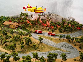 En esa línea el nuevo diorama representa a la Unidad Militar de Emergencias realizando algunas de sus funciones: contiene actuaciones en un terremoto, una inundación y un incendio en un espacio de 2,5 X 1 m.