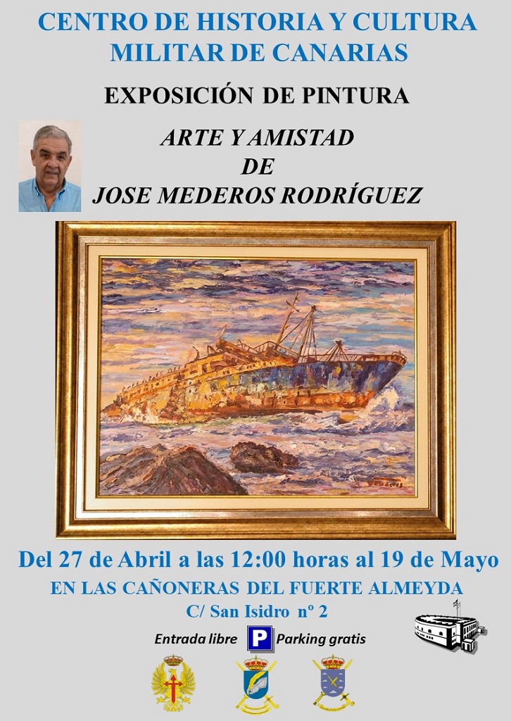 El autor de estas obras, Coronel Médico retirado, ha tenido una dilatada vida militar ejerciendo la medicina en distintas Unidades del Archipiélago, dedicando desde su pase a la reserva su tiempo a una de sus aficiones, La Pintura. Entre las obras que se exhiben, paisajes y marinas, el autor quiere homenajear, de alguna manera, al crucero SS América, que participó en la 2ª Guerra Mundial transportando tropas desde Estados Unidos a Europa y que una tormenta hizo que finalizara sus últimos días en la Isla de Fuerteventura en la playa de Garcey, donde encalló el 15 de enero de 1994.