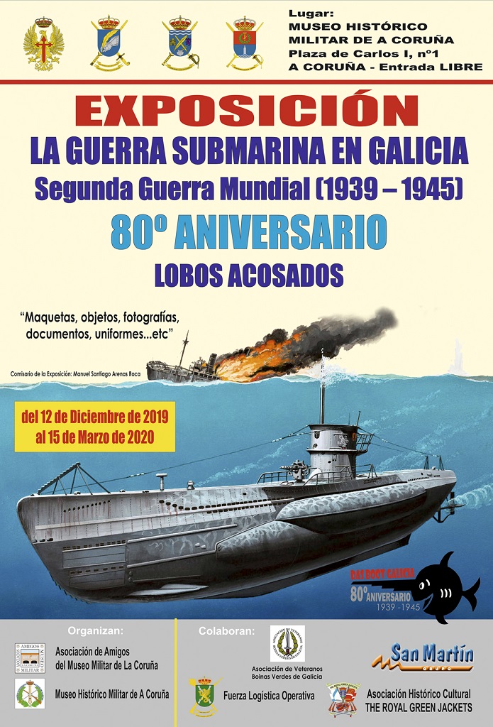 Con motivo del 80 aniversario del comienzo de la Segunda Guerra Mundial la Asociación de Amigos del Museo Militar de la Coruña y el Museo Histórico Militar de A Coruña organizan la exposición "La guerra submarina en Galicia. Segunda Guerra Mundial (1939- 1945). “Lobos Acosados”