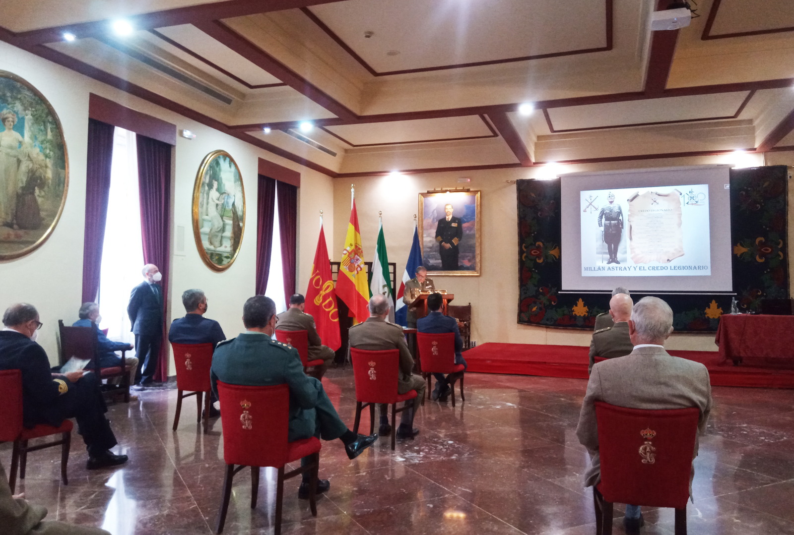 En la ponencia se mostró al Fundador de la Legión como único autor y responsable de la redacción del Credo Legionario, alma de La Legión, también versó sobre sus orígenes, entorno familiar, trayectoria militar y la influencia que todo ello tuvo en la aportación que Millán-Astray hizo a La Legión. El coronel Díaz concluyó analizando los espíritus del Credo y la razón de ser de cada uno de ellos, pasando a continuación al turno de preguntas.