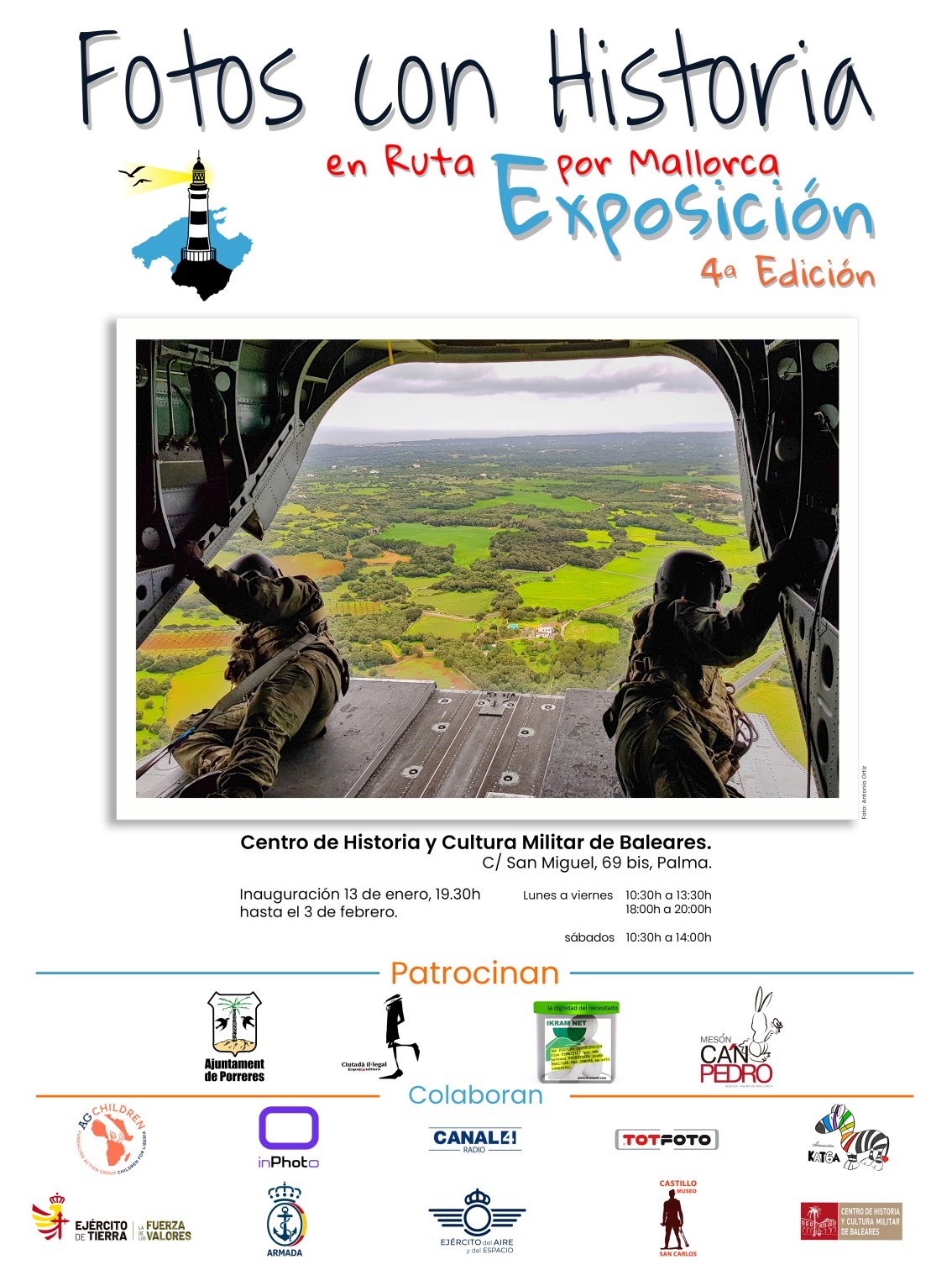 El próximo viernes día 13, a las 19.30h, tendrá lugar en el Claustro de Santa Margarita, Centro de Historia y Cultura Militar de Baleares (C/San Miguel 69B, Palma), la inauguración de la exposición “Fotos con Historia en ruta por Mallorca”, en su IV edición.