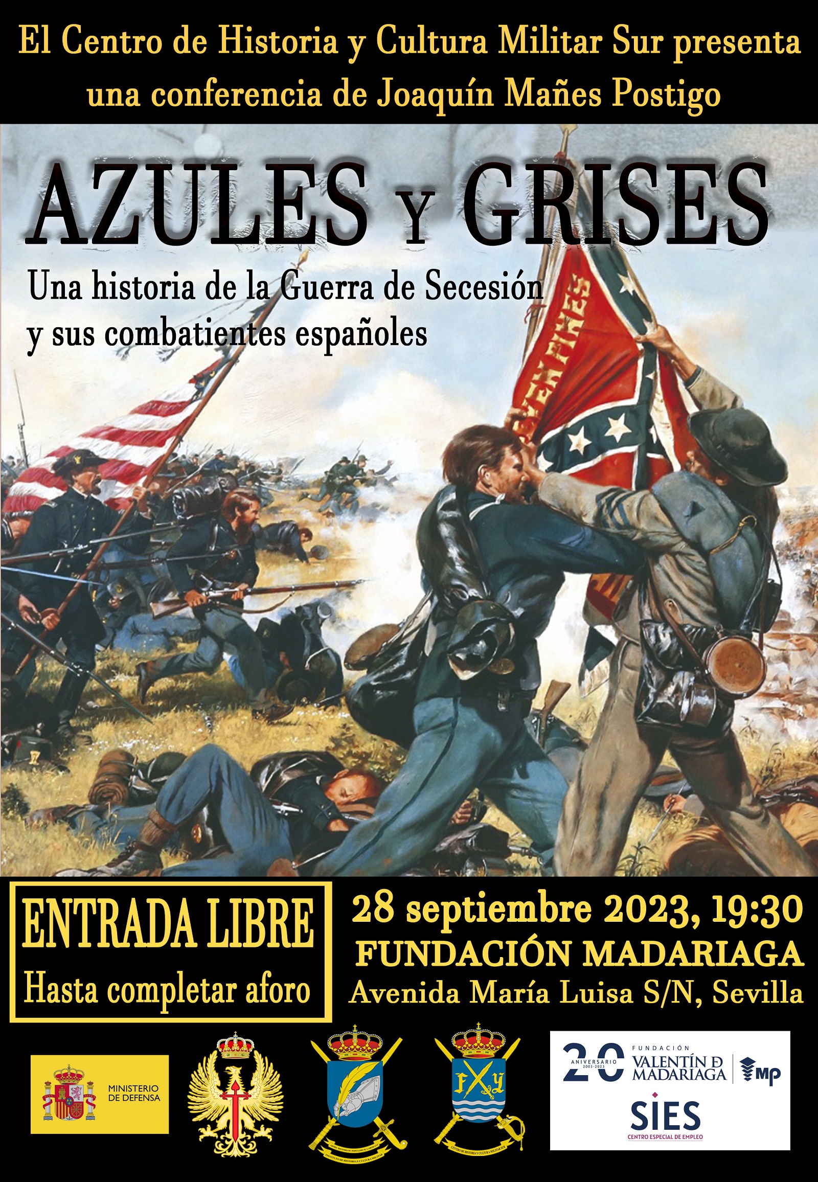 La conferencia, que tendrá lugar en la Fundación Madariaga, en Sevilla, el próximo día 28 de septiembre a las 19:30 horas, se va a centrar, dentro de la amplitud del título que anuncia a la misma, el de los españoles que intervinieron en la guerra de Secesión, en el papel desempeñado por dos de sus testigos de excepción: el general Prim, quien visitó el frente con las tropas de la Unión, extrayendo de ello sus propias e interesantísimas conclusiones, y el embajador español en Estado Unidos durante ese periodo, el sevillano Gabriel García Tassara, protagonista de las relaciones diplomáticas entre España y Estados Unidos durante la guerra civil americana y que en diversas ocasiones resultaron tan tensas como difíciles. A continuación, se expondrá acerca de la implicación de Cuba en el conflicto, a través de aquellos españoles de la isla, tanto los que participaron en un bando como en el otro, en la búsqueda, para ambas partes, de una vía para la proclamación de la independencia de España, y el mantenimiento de la esclavitud para los que lucharon con la Confederación, hecho que pervivió en la isla más allá de su abolición en Estados Unidos con el fin de la Guerra de Secesión. Por último, una breve referencia al contexto histórico de España en esa década de 1860 y algunas reseñas de aquellos españoles que combatieron tanto en un bando como en el otro; su significación y una valoración, para terminar, de la herencia española en Estados Unidos, generada por enormes personajes de nuestra historia y que construyeron un relato épico en esa nación, hoy la más poderosa de la tierra.