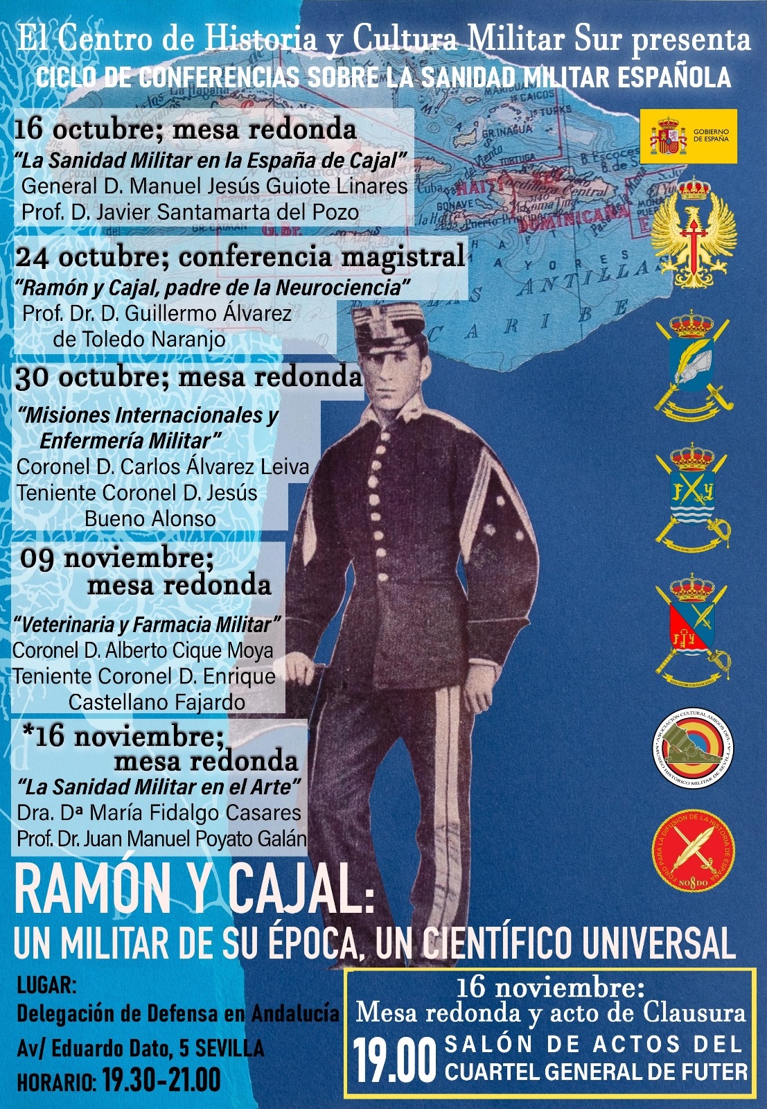 Esta actividad se enmarca en el conjunto que organiza el Centro de Historia y Cultura Militar Sur en el año 2023, como homenaje a la figura de Santiago Ramón y Cajal, con motivo de la celebración del 150º aniversario de su nombramiento de como teniente médico.