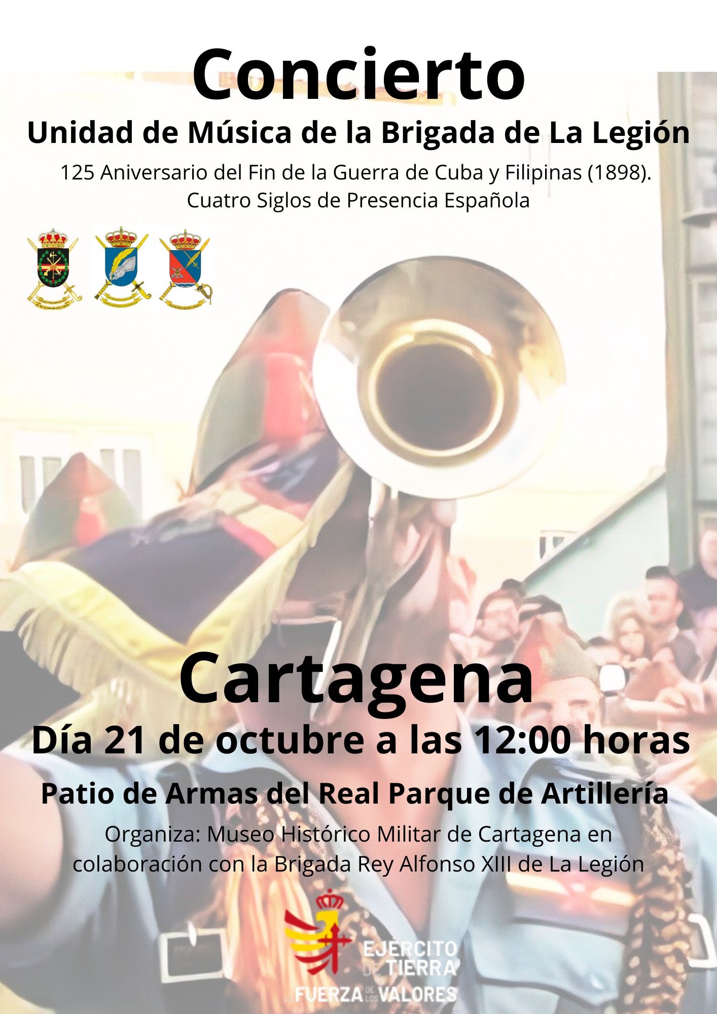 El concierto será ofrecido el próximo 21 de octubre de 2023 por la Unidad de Música de la Brigada de La Legión en el Museo Histórico Militar de Cartagena.