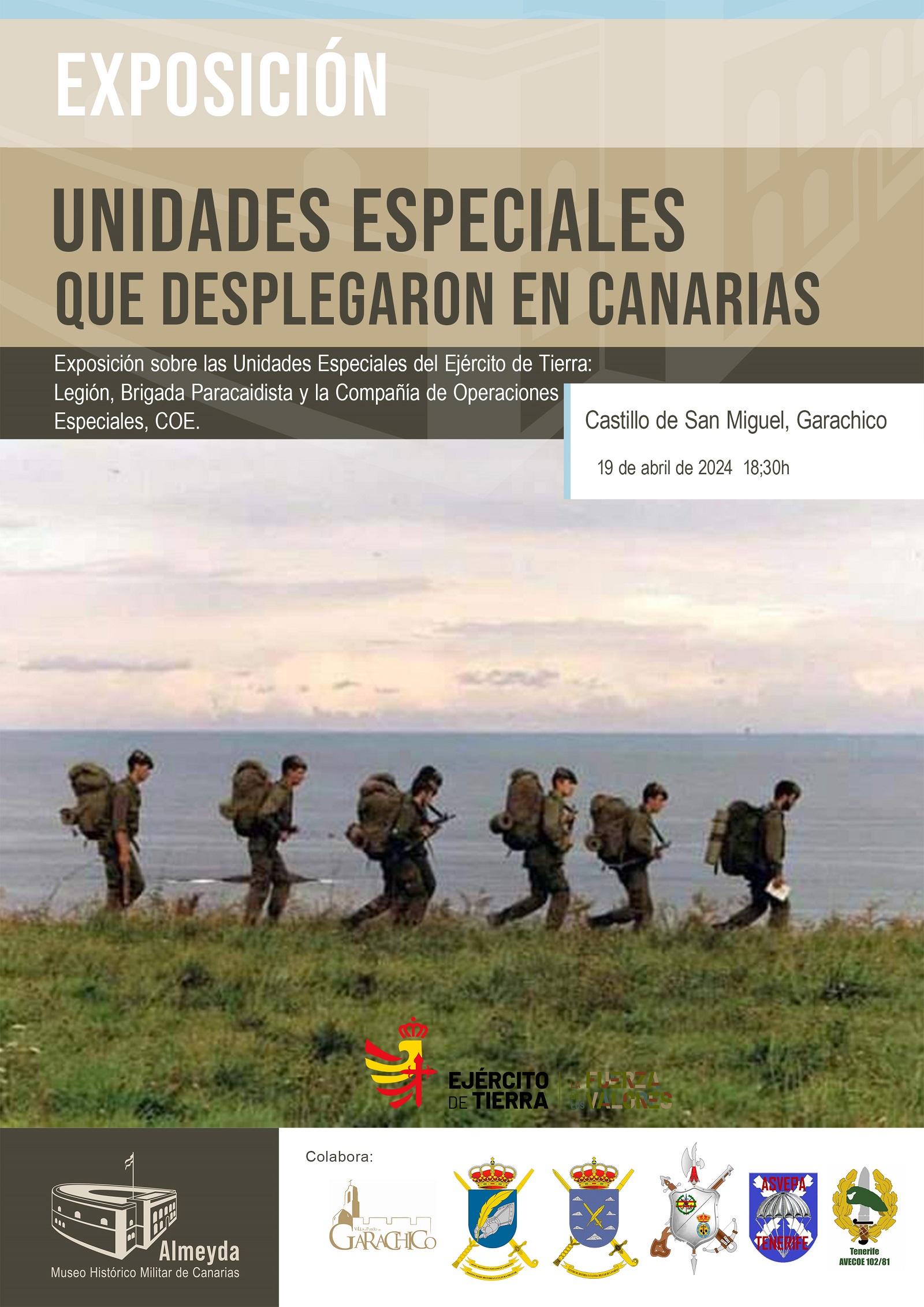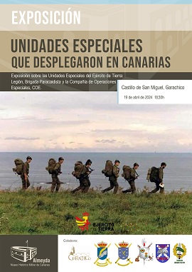 El Centro de Historia y Cultura Militar de Canarias en colaboración con el Excmo. Ayuntamiento Villa y Puerto de Garachico inaugura el próximo día 19 de abril, en la sala de exposiciones del castillo de San Miguel de Garachico la “Exposición Unidades Especiales que desplegaron en Canarias”.