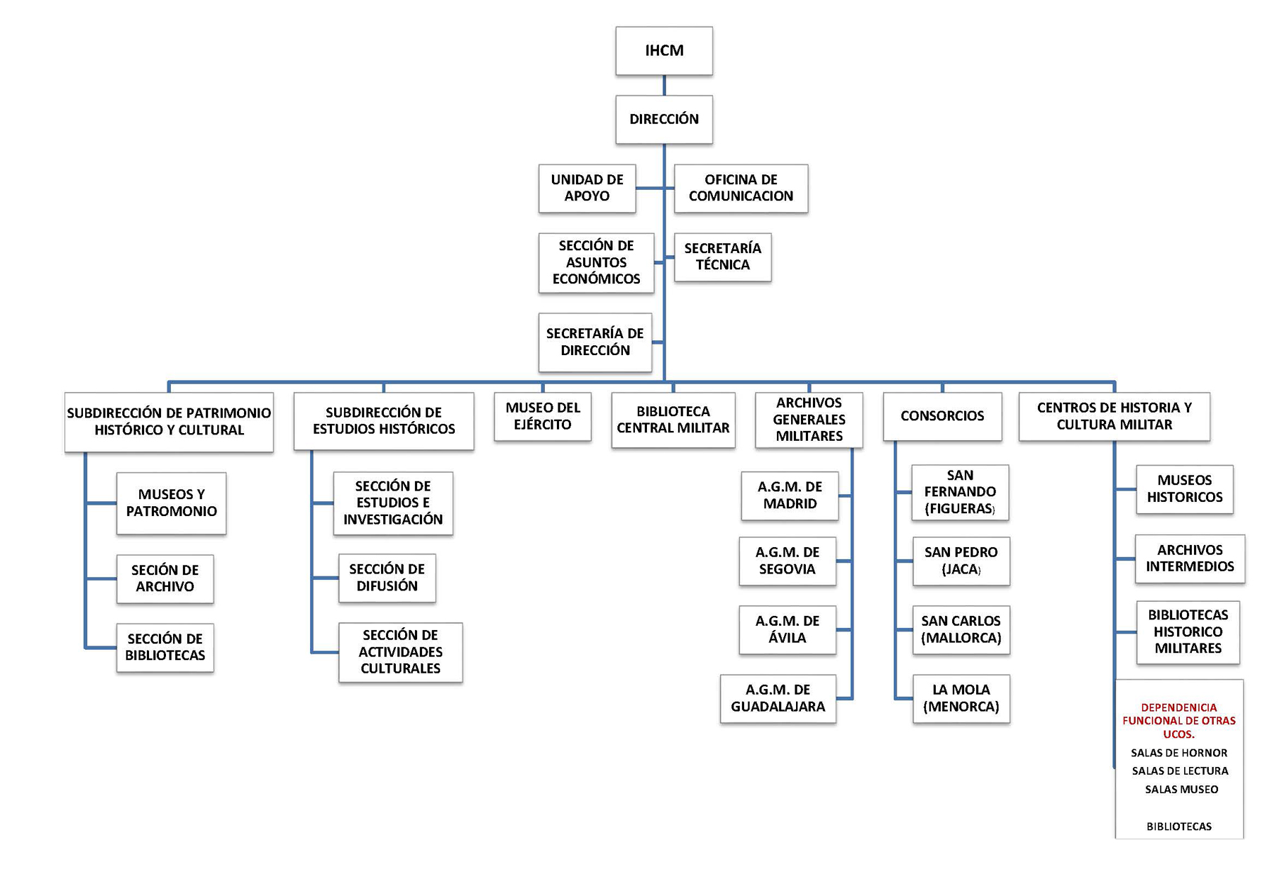 El Instituto de Historia y Cultura Militar, bajo la dependencia directa del Jefe del Estado Mayor del Ejército, es un órgano de nivel Dirección integrado orgánicamente en el Cuartel General del Ejército.