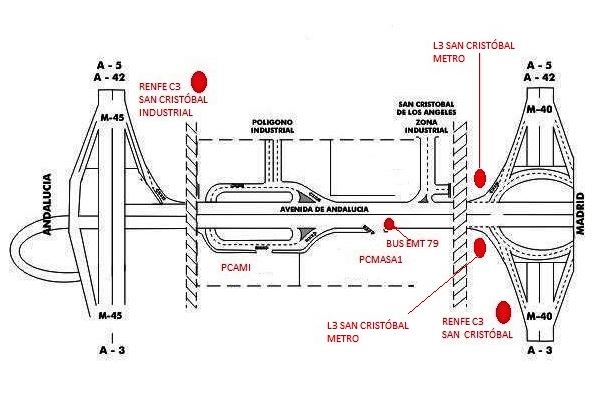 Actualmente se puede llegar al PCMASA 1 por carretera sin problemas. Las principales vías de comunicación con la Avenida Andalucía son las siguientes: