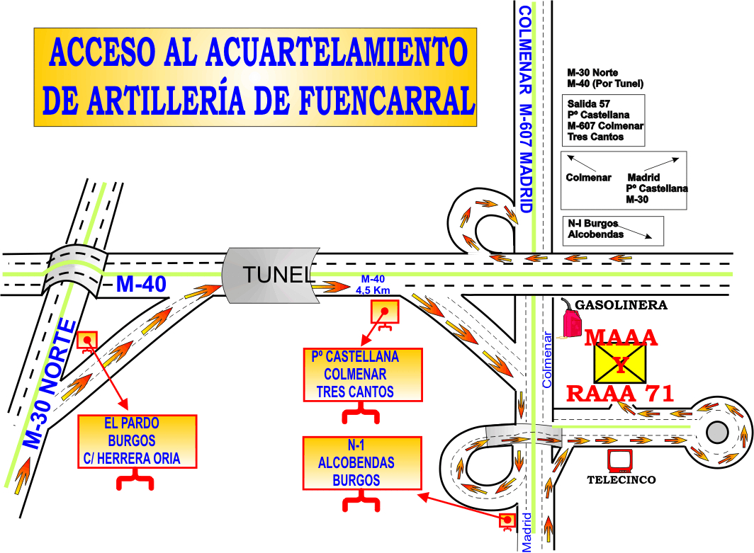 Acceso por Metro: La estación de Metro más cercana es la de Las Tablas (líneas 1 y 10), situada a unos 15/20 minutos andando del Acuartelamiento. Las estaciones de Chamartín, Begoña y Ronda de la Comunicación están conectadas con el Acuartelamiento por el autobús interurbano 154.