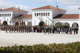 Contamos también ese día con la visita de 40 de alumnos de 3º de la ESO del IES “José de Churriguera” con el Director del centro y dos profesores, coordinadores de la actividad de 4º ESO+EMPRESAS, donde después de una presentación de las actividades propias de la Unidad se realizó un recorrido por las instalaciones del Acuartelamiento, presenciando también el acto a los caídos.