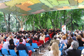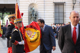 El acto comenzó a las 10:30 horas y consistió en la Jura de Bandera, acto a los caídos y desfile de la fuerza, seguidamente se ofreció un concierto en la zona de los jardines.